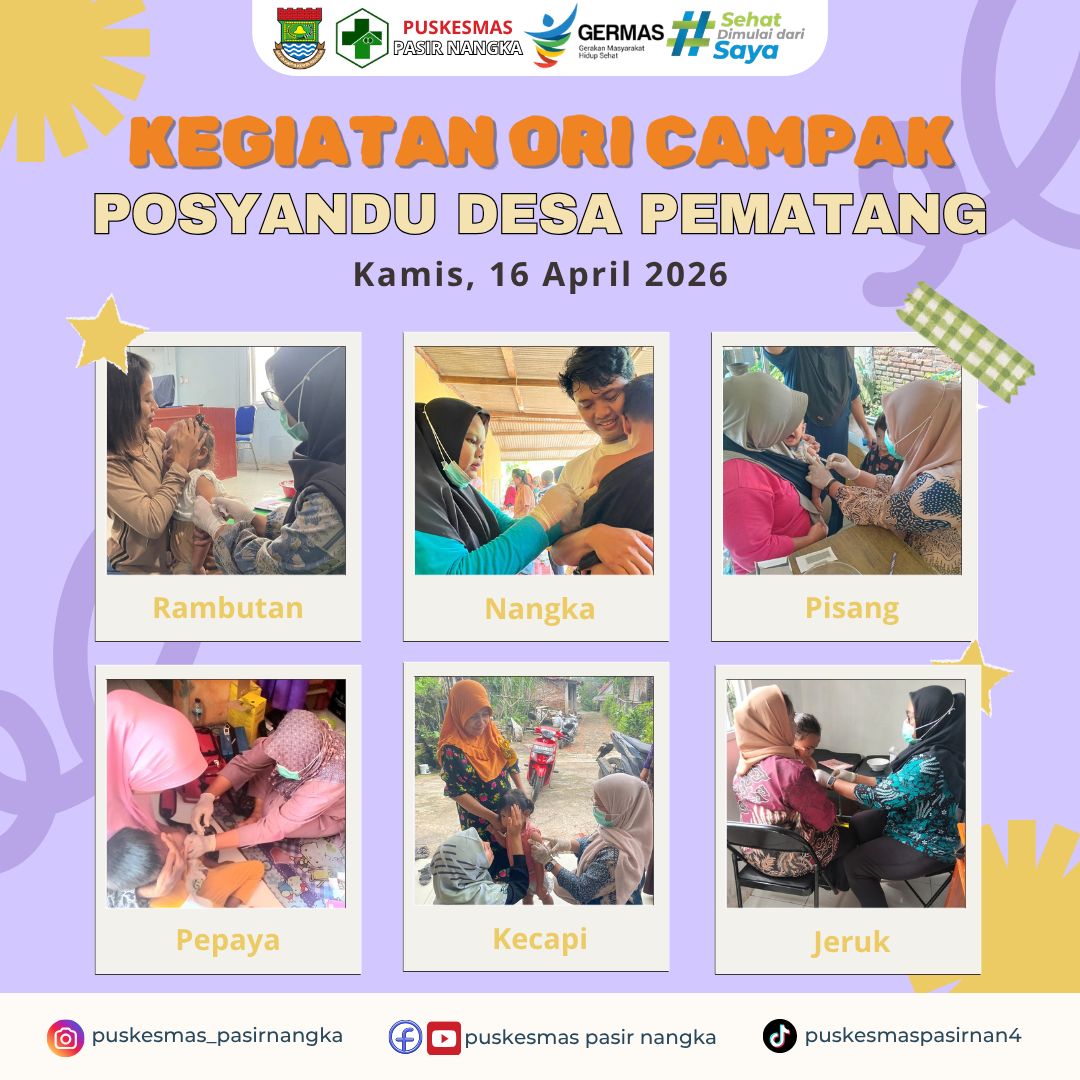 Puskesmas Pasir Nangka melaksanakan kegiatan Outbreak Response Immunization (ORI) Campak di Desa Pematang pada tanggal 15 hingga 16 April 2026. Kegiatan ini menyasar bayi dan balita usia 9–59 bulan guna meningkatkan kekebalan tubuh terhadap penyakit campak yang berpotensi menimbulkan komplikasi serius.