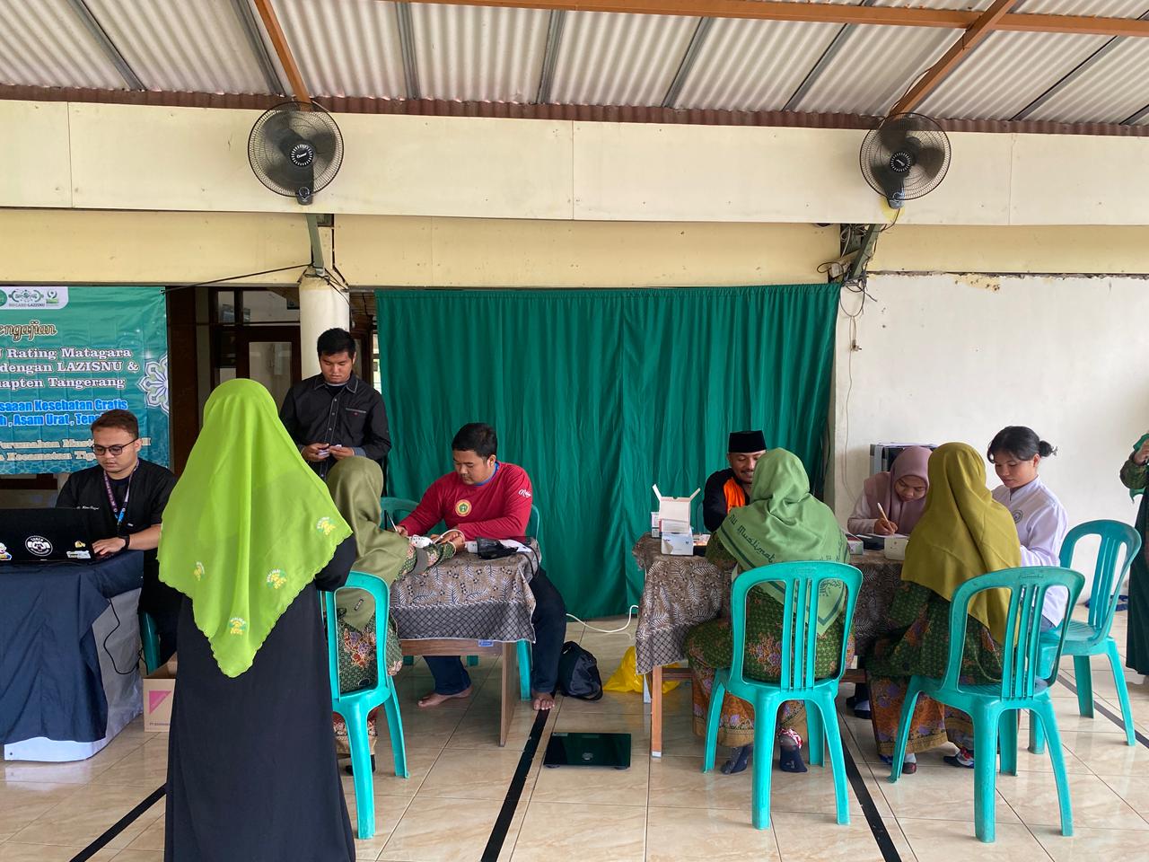 Puskesmas Pasir Nangka melaksanakan kegiatan cek kesehatan gratis dalam rangka mendukung acara pengajian rutin Muslimat NU di Desa Matagara yang berlangsung di Masjid An-Nur.